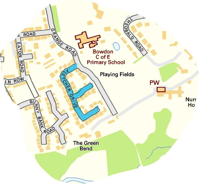 These more recent properties face onto Grange Road, but were undoubtedly built at the same time as those on Fletcher Drive.