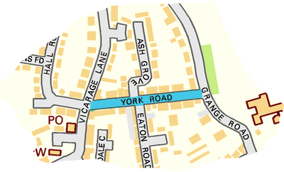 Perhaps a little shabby, but has character. On the eastern side of Vicarage Lane at the junction with York Road.